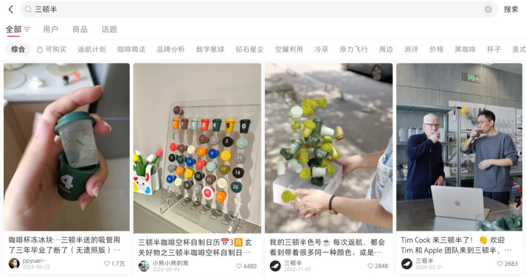三頓半作為咖啡領(lǐng)域的創(chuàng)新先鋒,其憑借獨(dú)特的小罐咖啡形式,曾在小紅書(shū)上掀起了一股咖啡熱潮。眾多美食和飲料主播使用三頓半推出各種創(chuàng)意的咖啡沖泡教程和咖啡與美食搭配的內(nèi)容,如咖啡拿鐵、摩卡星冰樂(lè)等,為用戶(hù)展示了咖啡的無(wú)限可能性。消費(fèi)者也積極響應(yīng),在小紅書(shū)上分享自己獨(dú)特的“三頓半空罐創(chuàng)意玩法”,將空罐制作成各種精美的手工飾品,展現(xiàn)了他們對(duì)生活的小巧思和對(duì)品牌的熱愛(ài)。此外,三頓半還精心策劃了豐富的營(yíng)銷(xiāo)活動(dòng),例如“返航計(jì)劃”,該活動(dòng)鼓勵(lì)用戶(hù)收集咖啡空罐,并前往指定地點(diǎn)兌換周邊產(chǎn)品或參與線(xiàn)下活動(dòng)。這不僅有效提高了用戶(hù)的參與感,還極大地增強(qiáng)了品牌忠誠(chéng)度。
